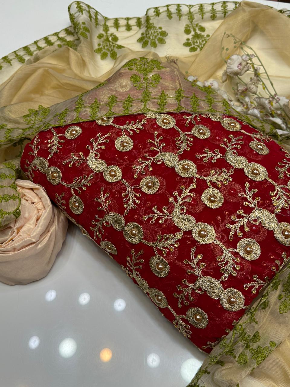 • Dupatta: Premium Mehsori silk with intricate embroidery