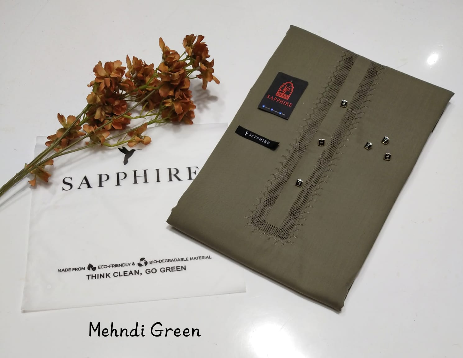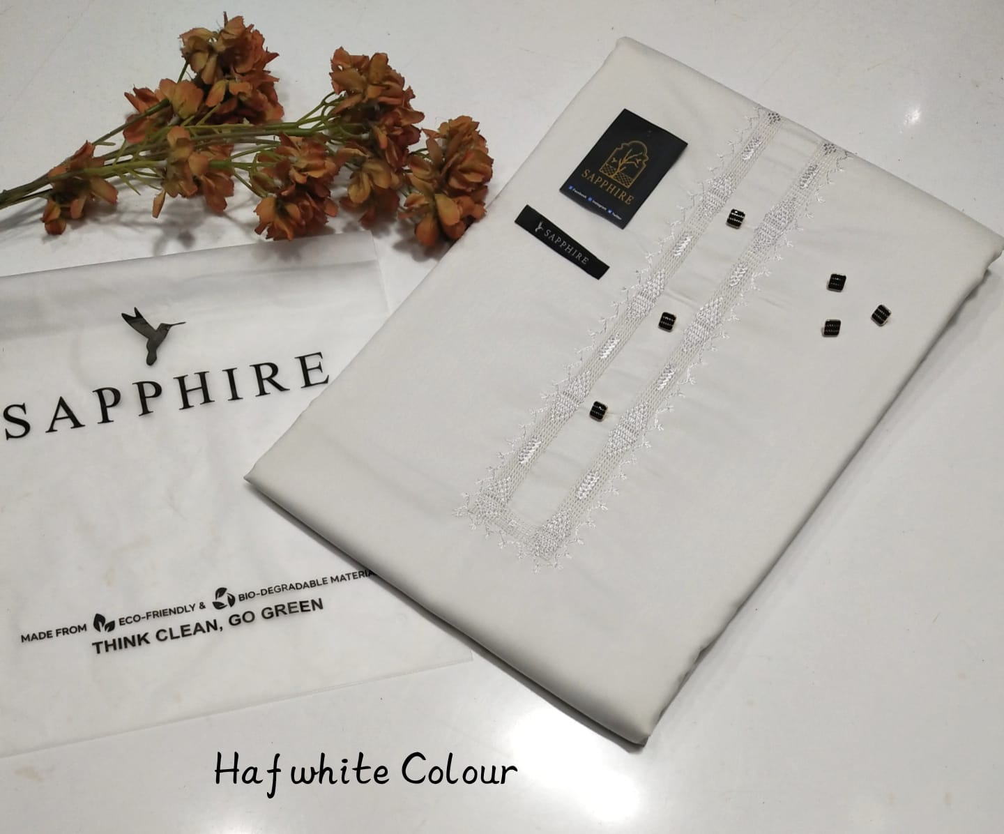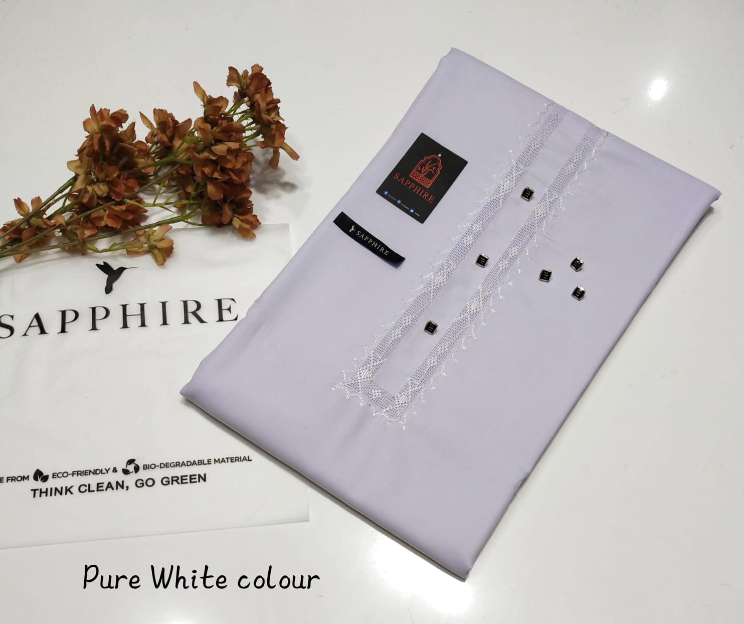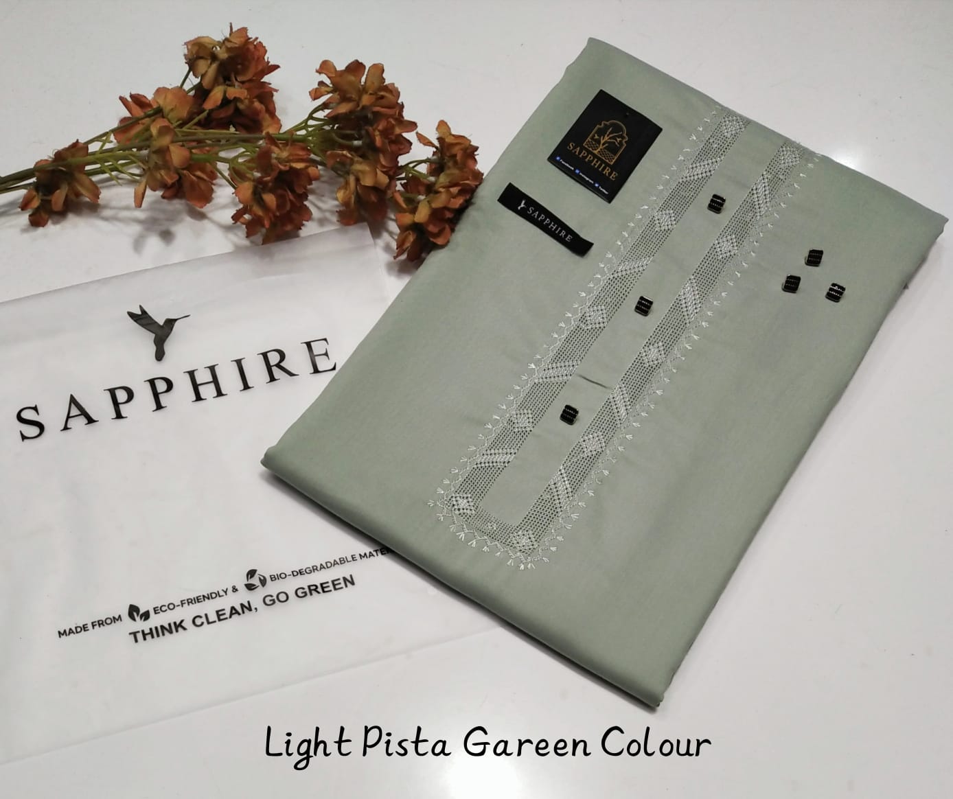 • Sapphire Color with Tag Card and Packing Bag: This suit comes in a rich sapphire color, adding a luxurious touch to your wardrobe. The packaging includes a Sapphire-branded tag card and a premium packing bag, making it a great option for gifting or special purchases.